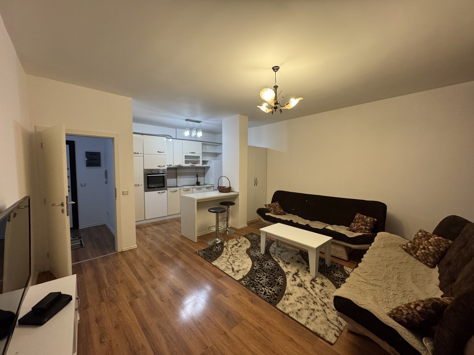Ofrohet për Qira Banesë 1+1 në Fushë Kosovë, banesa gjendet te Berisha Group, ka një sipërfaqe prej 66m2 dhe ndodhet në katin e 4-të me ashensor funksional, sistemin e ngrohjes e ka me energji elektrike, me kushte shumë të mira banimi, e mobiluar komplet dhe e gatshme për banim. Renditja | Sallon me Kuzhinë | Dhomë Gjumi | Banjo | Ballkon |