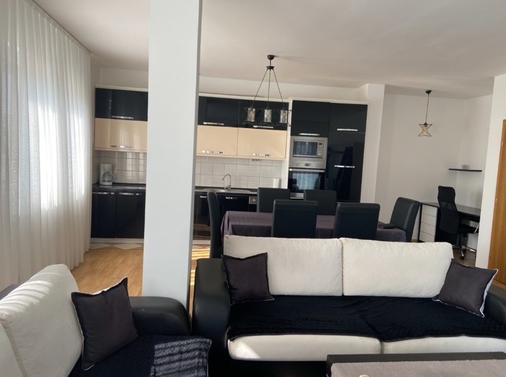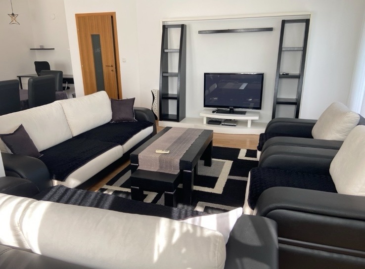 Ofrohet për Qira Banesë 2+1 në Parkun e Qytetit, banesa gjendet te Albi Market, ka një sipërfaqe prej 95m2 dhe ndodhet në katin e 5-të me ashensor funksional, sistemin e ngrohjes e ka me Termokos, me kushte shumë të mira banimi, e mobiluar komplet dhe e gatshme për banim. Renditja | Sallon me Kuzhinë | 2 Dhoma Gjumi | Banjo | 2 Ballkona |