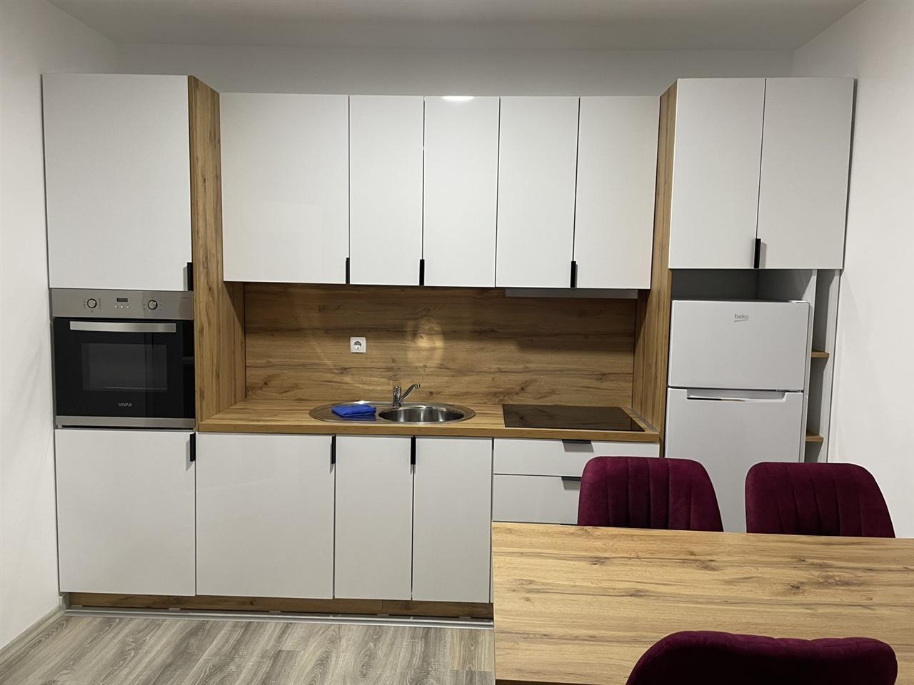 Ofrohet për qira Banesë 1+1 në Fushë Kosovë, banesa gjendet përballë Hotel Sonoma, ka një sipërfaqe prej 60m2 dhe ndodhet në katin e 2-të me ashensor funksional, me kushte shumë të mira banimi, e mobiluar komplet dhe e gatshme për banim. Renditja | Sallon me Kuzhinë | Dhomë Gjumi | Banjo | Ballkon |
