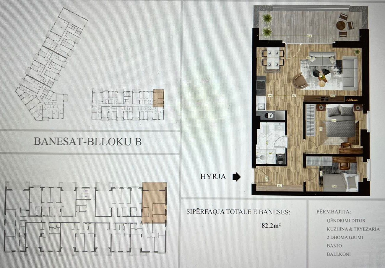Banesë në shitje Prishtina e Re, tek Albanica Home, Blloku B1 Posedon 82.2m2 në katin e 6-të me ashensor funksional. Përfundon në fund te vitit 2025