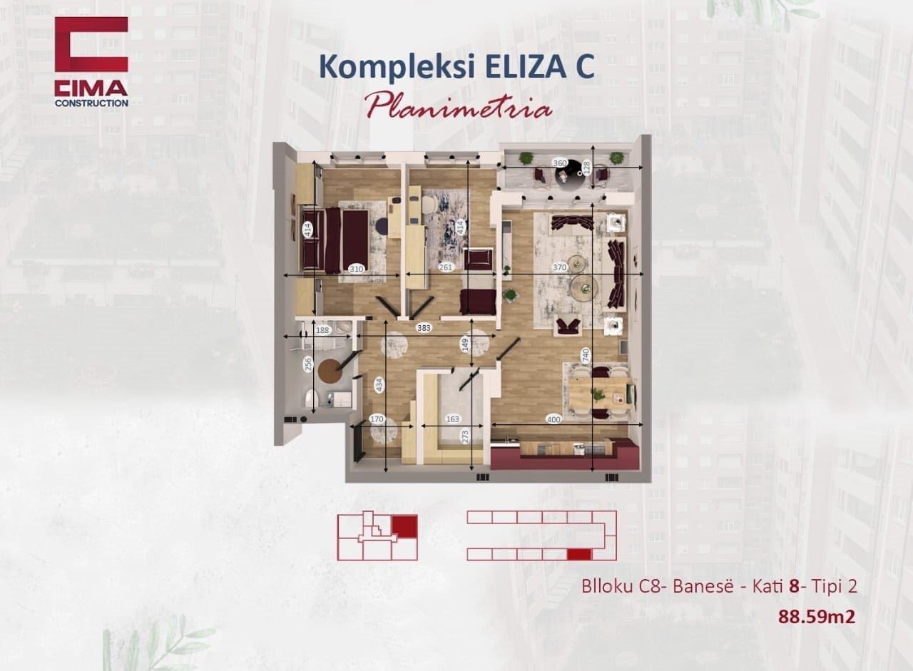Banesë në shitje në Fushë Kosovë, në Lagjen Eliza C, blloku c8. Posaedon 88.59m2 në katin 8-të ashensor funksional. Ndërtim e sipër, përfundon në fund të vitit 2025.