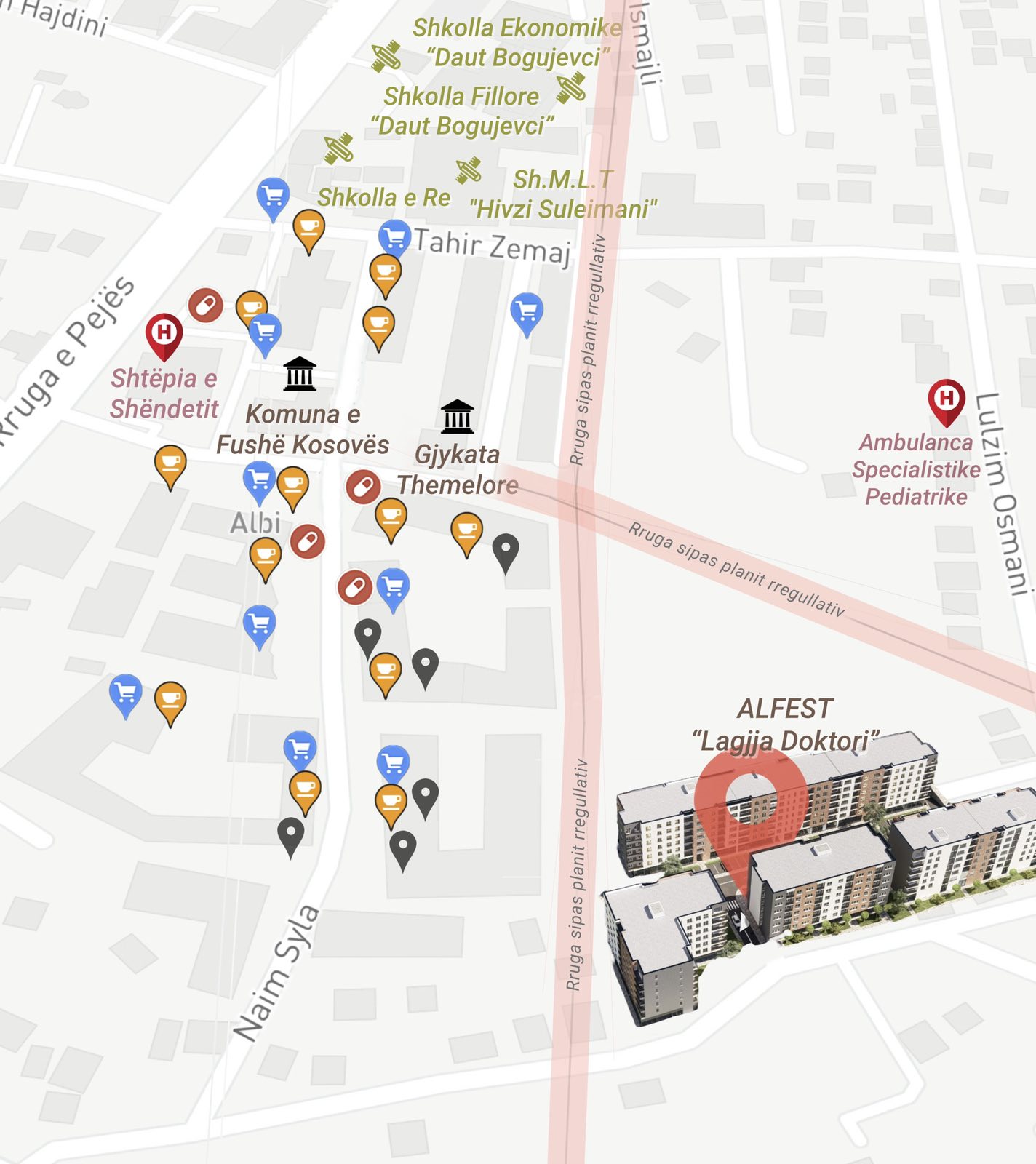 Banesë në shitje në Fushë Kosovë, ndodhet tek Lagjia Doktorri. Objekti është ndërtim e sipër ku Tipi i banesave 01 dhe 02 përfundojn ne Gusht 2025 ndërsa Tipi 03 dhe 04 përfundojn ne Dhjetor 2025 Tipet e banesave me planimetri: 60m2, 65m2, 82m2, 84m2, 85m2, 86m2, 89m2.