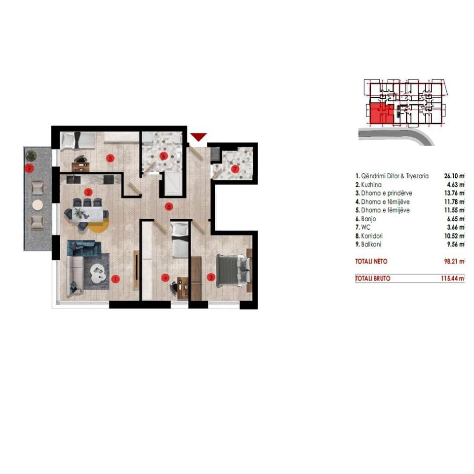Banesë në shitje në Kalabri(Emshir), ndodhet në Kompleksin Trea. Posedonë siperfaqe129.62m2 kati 3, Objekti 6-të Priten të perfundojne në fund te vitit 2025