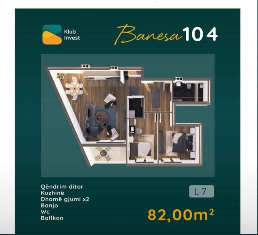 Banesë në shitje në Lagjen Prishtina e Re, Kompleksi Klub Invest. Posedon 82m2 në katin e 3-të Tipi B, me ashensor funksional. E gatshme për banim në fund të vitit 2025.