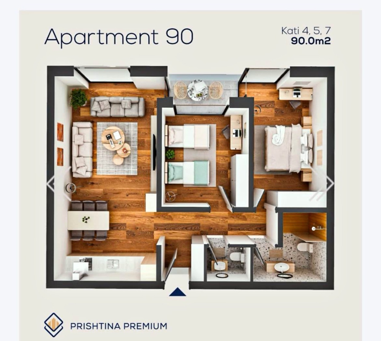 Banesë në shitje Prishtina e Re, Kompleksi Prishtina Premium. Posedon 90m2, kati 2-të me ashensor funksional, pamje nga rruga. Përfundon në Korrik te vitit 2025.
