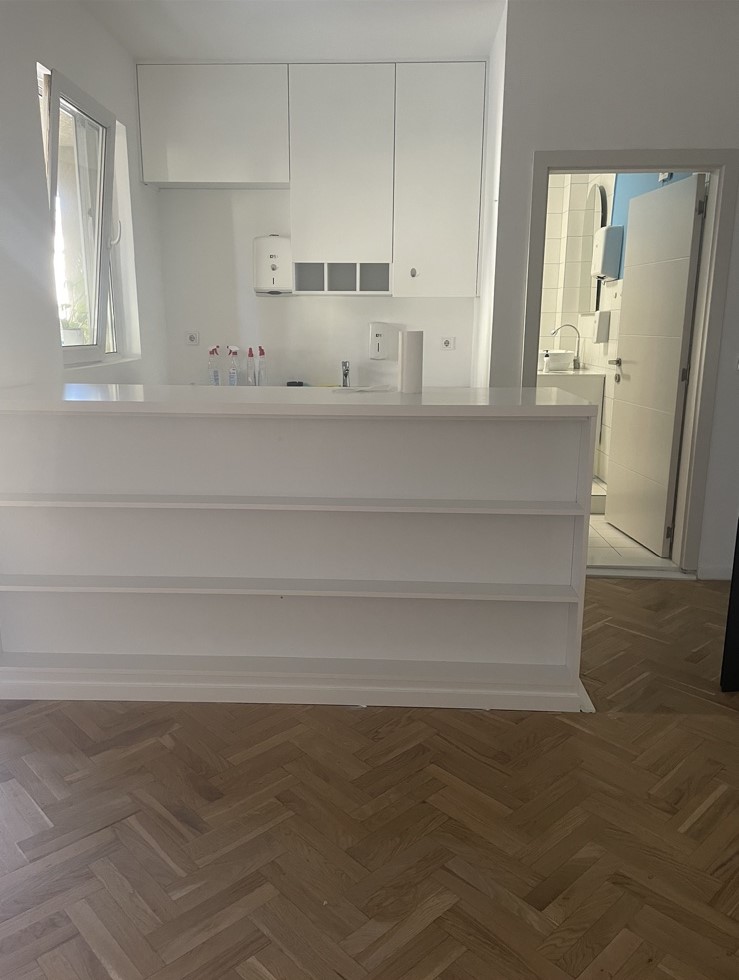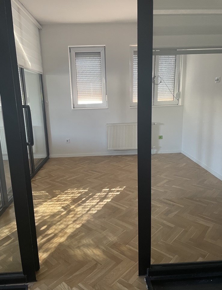 Ofrohet për qira Banesë (Zyre) në Qendër, banesa gjendet afër Sheshit, ka një sipërfaqe prej 90m2 dhe ndodhet në katin e 2-të, me kushte të mira, mund të shfrytëzohet për veprimtari të ndryshme biznesore. Renditja | 3 Hapësira Pune | Banjo | Wc | Ballkon |