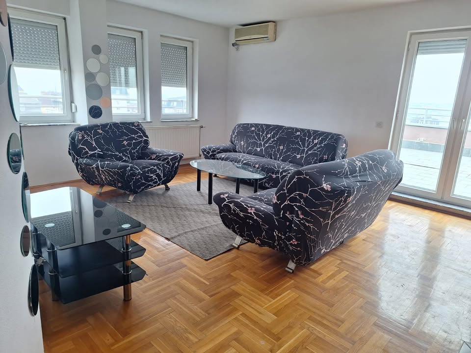 Ofrohet për Qira Penthouse 2+1 në Aktash, banesa gjendet në Rrugën "Hajrullah Abdullahu", ka një sipërfaqe prej 90m2 + Terasa prej 45m2 dhe ndodhet në katin e 7-të me ashensor funksional, me kushte shumë të mira banimi, e mobiluar komplet dhe e gatshme për banim. Renditja | Sallon me Kuzhinë | 2 Dhoma Gjumi | Banjo | Wc | Teras |