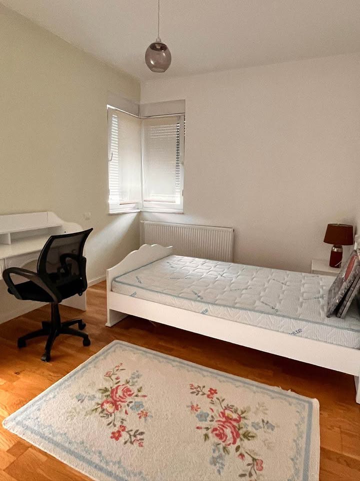 Ofrohet për qira Shtëpi 4+1 në Lagjen Qershia, shtëpia gjendet në Rrugën "Lubjana", ka një sipërfaqe prej 202m2, me kushte shumë të mira banimi, e mobiluar komplet dhe e gatshme për banim. Renditja | Sallon me Kuzhinë | 4 Dhoma Gjumi | 3 Banjo | Ballkon |